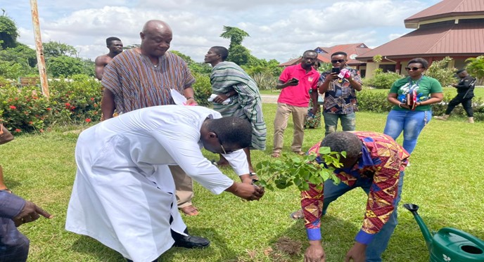 Kwabre East Municipal Assembly launched their version of the Tree Planting Program at Our Lady of Grace Senior High School (OLAG), Mamponteng on Friday 9th June, 2023.Tree planting Exercise was organized by the Municipal Chief Executive (MCE), with his entourage including the Municipal Coordinating Director, Forestry Commission all heads of Department, agencies launched the exercise with a Ceremonial planting of Trees as part of Ghana’s Agenda of Greening the country through tree planting. The Greening Ghana program through Tree planting was commemorated by number of dignitaries within the Municipal.