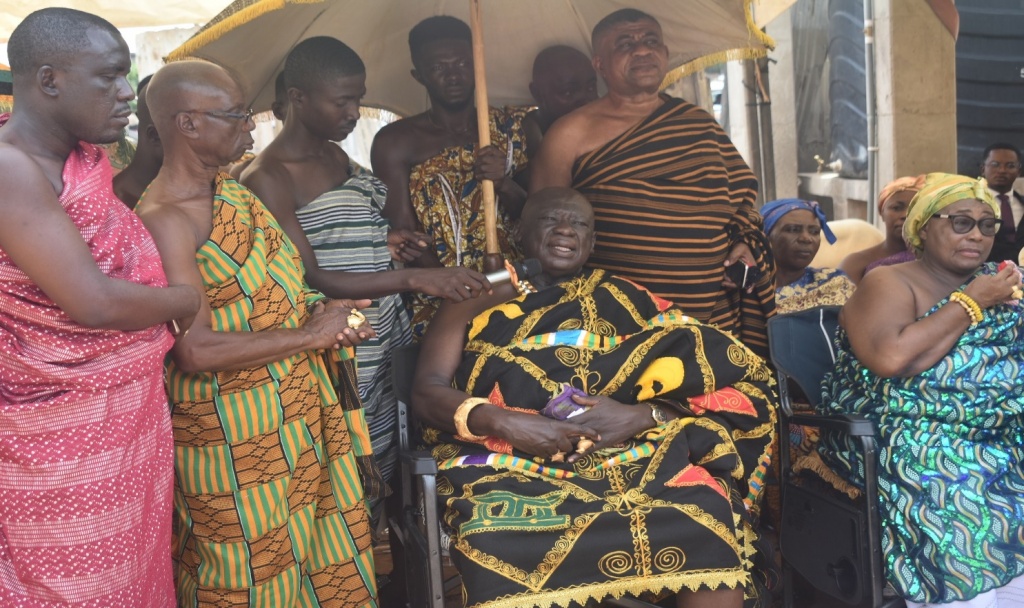 On behalf of the Assembly and Nananom the MCE Hon. Opoku Agyemang Bonsu and Nana Kyerew Akenten, Queen mother of Mamponteng presented a stool, Kente cloth and Sheep to the Chief Justice as sign of appreciation and gratitude.