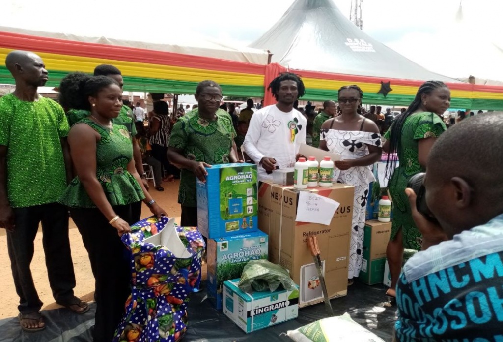 Mr.Swanzy Achar Moses a 56 year old Farmer from Bamang was awarded the overall best Farmer for the Kwabre East Municipality. He has a record of 16000 Catfish, 2000 Tilapia, 1500 Snails, Guinea fowl 8, Local fowl 200, Rabbits 4, Turkeys 4, Layers 4500, Oil palm 35 acres, Coconut 20 acres, Maize 6, Rice 6 acres, Cowpea 1 acres, Cassava 3 acres, Okro 3 acres.